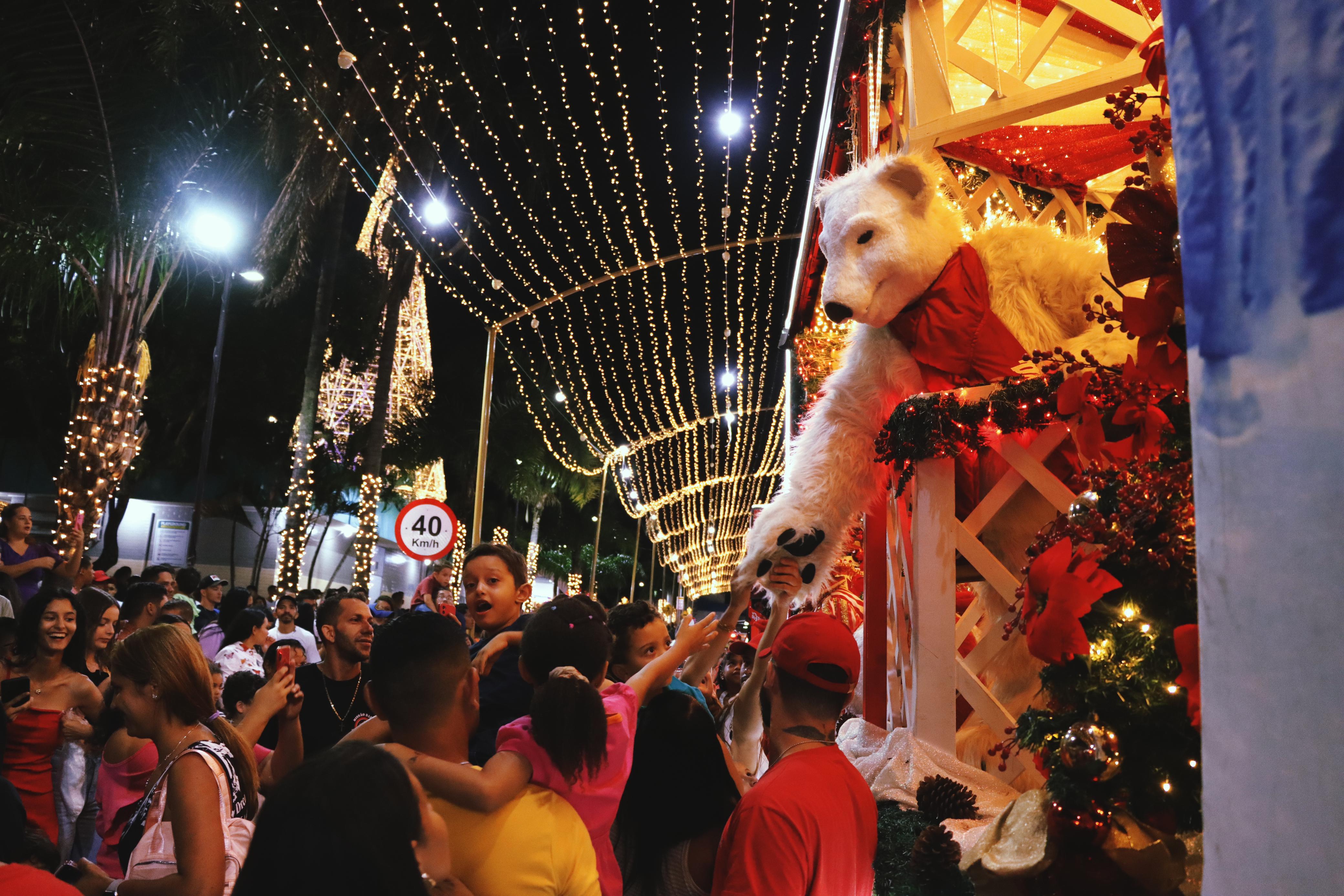 A festividade trouxe a magia do Natal com a presença da tradicional Caravana da Coca-Cola, que encantou o público com seu caminhão iluminado e personagens temáticos. Além disso, a noite foi animada por apresentações culturais, como a banda da Polícia Militar e a cantata da Companhia Segurart, que emocionaram os presentes com músicas natalinas.