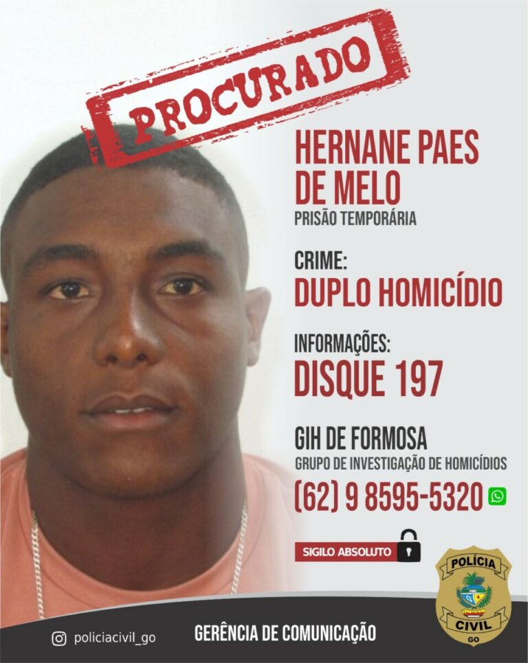 Em Formosa, no Entorno do Distrito Federal, ocorreu o assassinato de um casal no Setor Jardim das Américas. De acordo com a Polícia Civil de Goiás, o principal suspeito é o vizinho das vítimas, identificado como Hernane Paes de Melo, que está foragido.