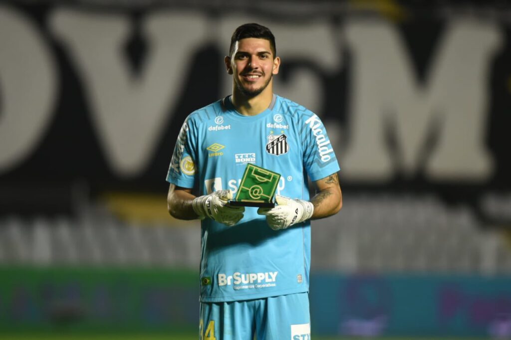 João Paulo com um dos diversos prêmios de melhor em campo que ganhou no Santos (Crédito: Divulgação SantosFC)