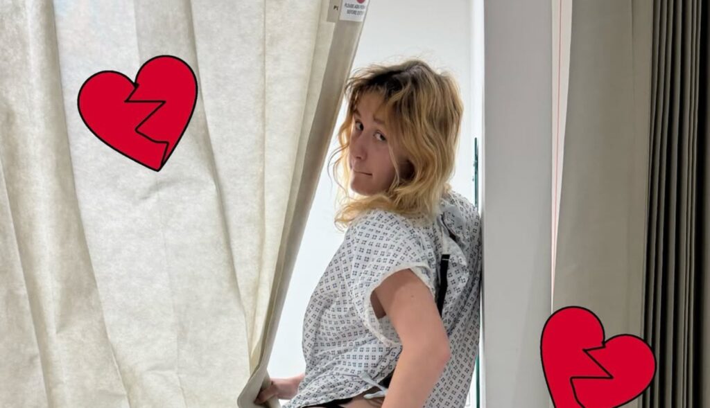 Phoebe Lunny, vocalista do Lambrini Girls, posa no hospital