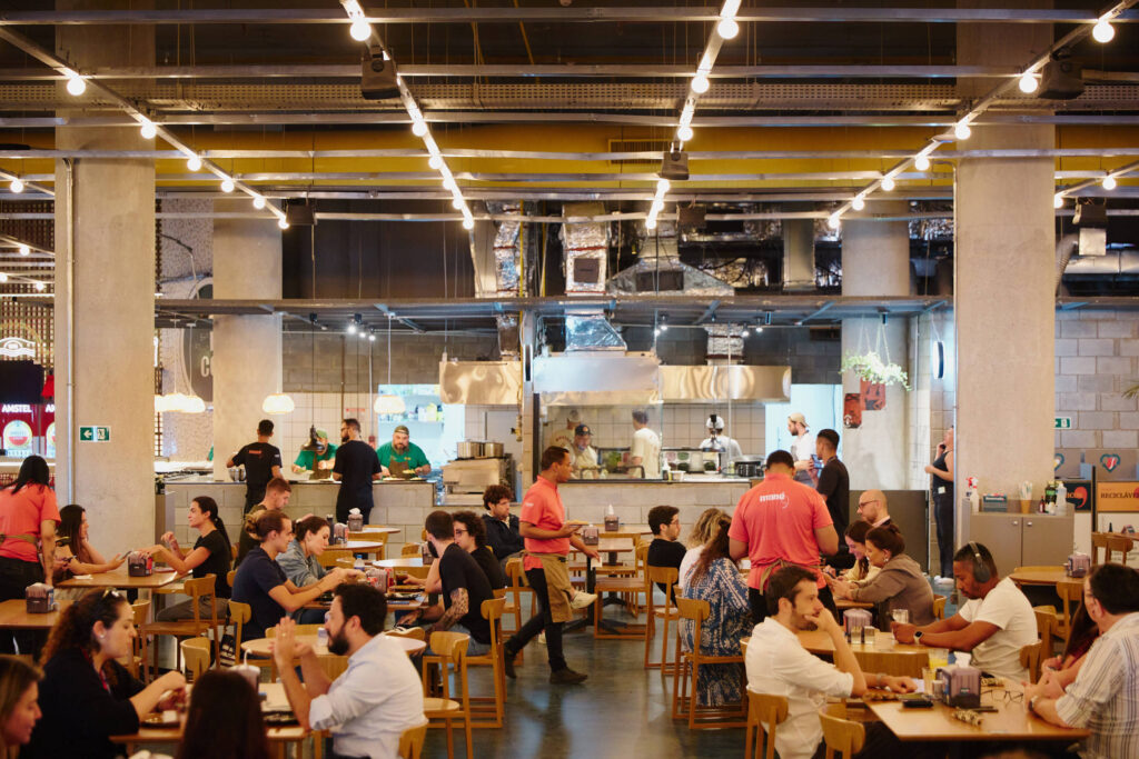 O ambiente para até 200 pessoas tem a proposta de servir pratos de chefs conhecidos com serviço fácil. Por isso, é possível concentrar tudo em um pedido só, feito por meio de totens de autoatendimento, sem a necessidade de pegar filas diferentes.