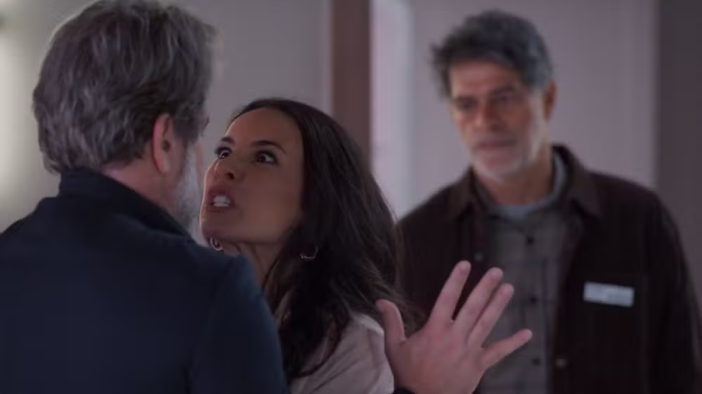 Cena promete tensão na novela quando a advogada acusa o ex-marido de tentar esconder crime contra o próprio filho
