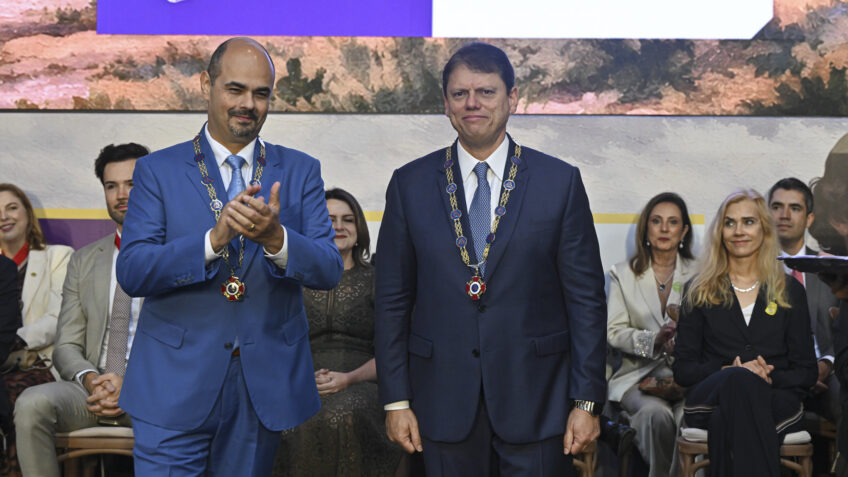 Outro político presente na cerimônia foi o senador Rogério Marinho (PL-RN) –que também é coordenador da pré-campanha presidencial de Flávio Bolsonaro. Marinho recebeu a Grande Medalha, 2ª maior honraria.