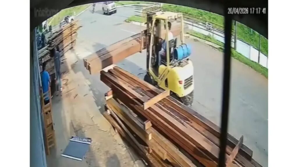 Imagens de câmeras de segurança mostram o momento em que a moto atinge o material que era levado pela empilhadeira, que trafegava em sentido contrário em uma rua de mão única. Com o impacto, o motociclista bateu a cabeça e foi lançado vários metros à frente. Socorristas foram chamados, mas ele não resistiu aos ferimentos e morreu no local.