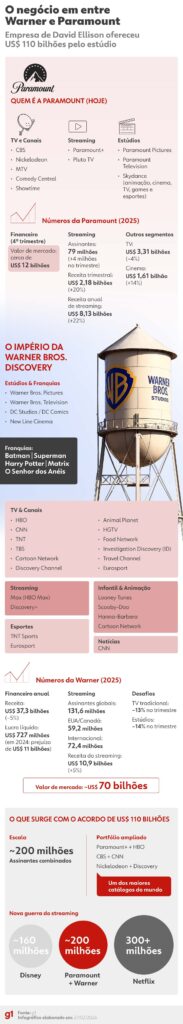A operação deve criar um dos maiores grupos de entretenimento do mundo, reunindo marcas como HBO, DC Comics, “Harry Potter” e “Game of Thrones”, além de uma base estimada de cerca de 200 milhões de assinantes e potencial para redesenhar o mercado global de entretenimento e streaming.