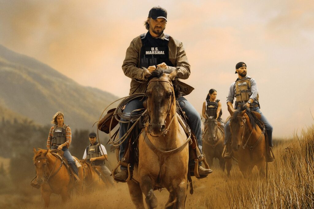 An American neo-Western television series, the Marshals TV show was created by Spencer Hudnut, based on characters created by Taylor Sheridan & John Linson. This Yellowstone spin-off stars Luke Grimes, Gil Birmingham, Mo Brings Plenty, Brecken Merrill, Arielle Kebbel, Ash Santos, Tatanka Means, and Logan Marshall-Green. In the story, with the Yellowstone Ranch behind him, Kayce Dutton (Grimes) joins an elite unit of U.S. Marshals, combining his skills as a cowboy and Navy SEAL to bring range justice to Montana. Kayce’s teammates include Pete Calvin (Marshall-Green), Belle Skinner (Kebbel), Andrea Cruz (Santos) and Miles Kittle (Means). Together, they must balance the high psychological cost of serving as the last line of defense in the region’s war on violence with their duty to their families. For Kayce, this includes his son Tate (Merrill) and confidants Thomas Rainwater (Birmingham) and Mo (Brings Plenty) from the Broken Rock reservation.