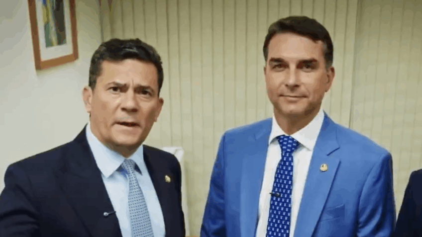 Moro e Flávio se encontram em vídeo inédito do PL, marcando sua primeira aparição conjunta.