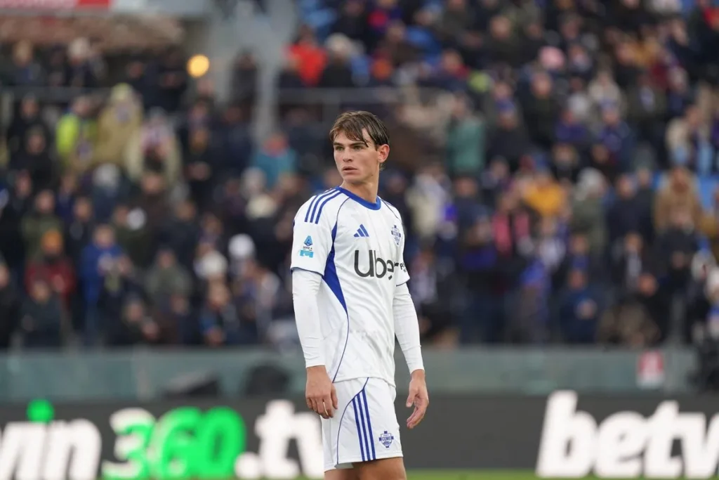 Nico Paz durante o duelo do Como contra o Pisa, no dia 6 de janeiro (Crédito: LaPresse / Alamy Stock Photo)